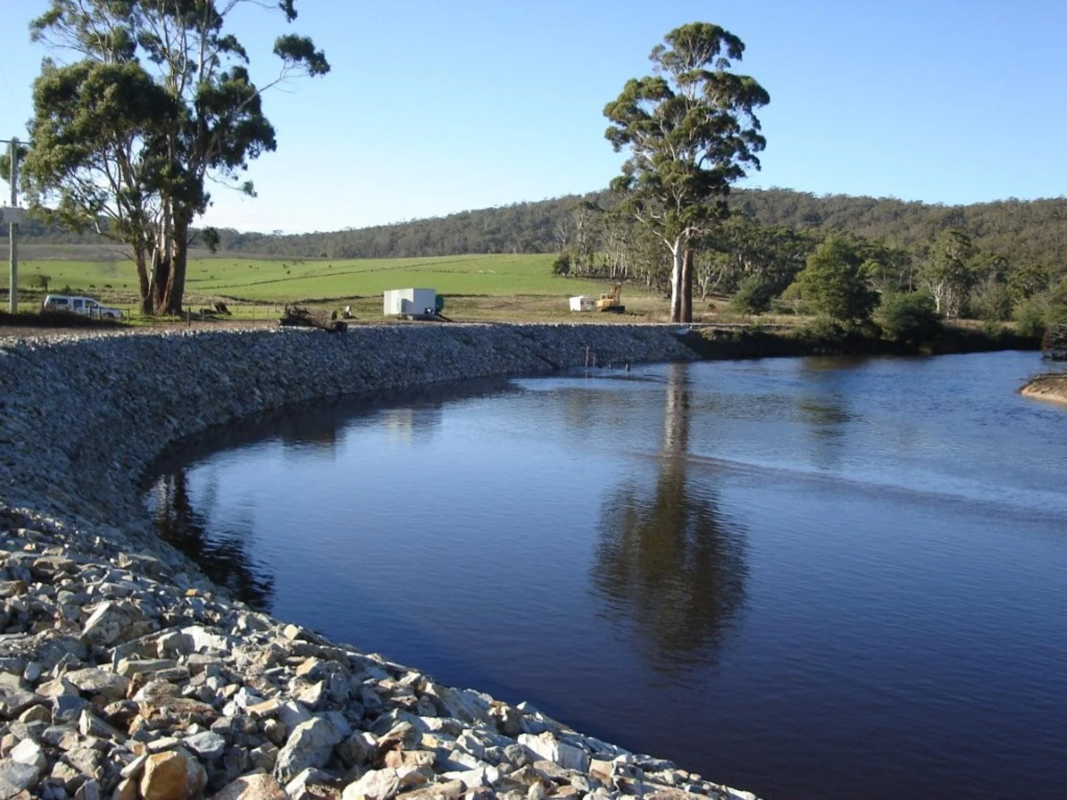 Farm track construction, dam excavation, land clearing, and rural drainage for landholders across Fingal, Scottsdale, Derby, and the broader North East Tasmania.